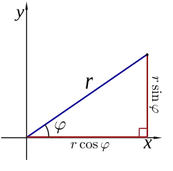 The polar coordinates and can be converted to the Cartesian coordinates and by using the trigonometric functions of sine and cosine, respectively:[11]
