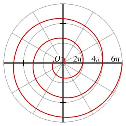 One arm of an Archimedean spiral with equation r(φ) = φ / 2π for 0 < φ < 6π