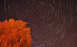 Polaris is a star in the northern circumpolar constellation of Ursa Minor. It is designated α Ursae Minoris (Latinized to Alpha Ursae Minoris) and is commonly called the North Star. With an apparent magnitude that fluctuates around 1.98,[3] it is the brightest star in the constellation and is readily visible to the naked eye at night.[16] The position of the star lies less than 1° away from the north celestial pole, making it the current northern pole star. The stable position of the star in the Northern Sky makes it useful for navigation.[17]