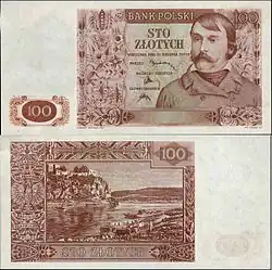 | 100 złotych | 138 × 69 mm | Green | Władysław II Jagiełło (Jogaila) | Polish white eagle with Grunwald swords and Teutonic armour Malbork Castle | |||