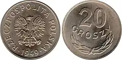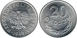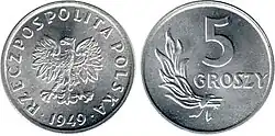 | Coins | 1 gr, 2 gr, 5 gr, 10 gr, 20 gr, 50 gr, 1 zł, 2 zł, 5 zł | ||||