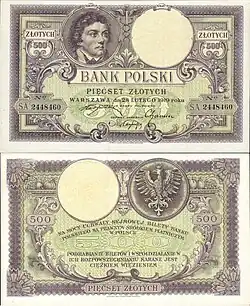 - ^ Popiołek, Anna (2017). "Banknot 500 zł z królem Janem III Sobieskim już w obiegu". Wyborcza.pl. Retrieved 1 November 2021.