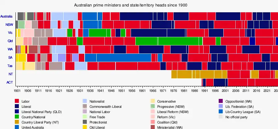 - ^ Bongiorno, Frank (27 March 2023). "Australia is now almost entirely held by Labor – but that doesn't necessarily make life easier for leaders". The Conversation. Retrieved 5 April 2023.