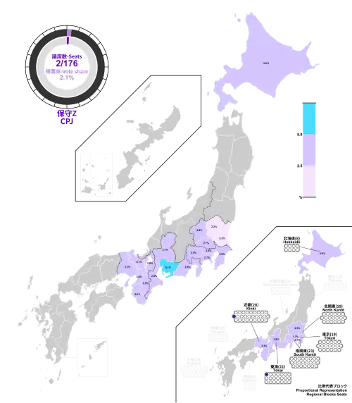 28. ^ "日本保守党が政党に 比例で得票率2%以上の要件満たす 交付金や比例重複など利点多く". 産経新聞. 28 October 2024. Archived from the original on 24 March 2025.