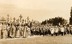 In 1648, the city became the base of a distinguished regiment of Ukrainian Cossacks, and served as a Cossack stronghold during the Khmelnytsky Uprising.[7] In 1650, to commemorate a victory of the Cossack Host over the Polish army at the Poltavka River, the Metropolitan of Kyiv, Sylvester Kossov, ordered the establishment of the Holy Cross Exaltation Monastery in Poltava. The project was financed by a number of prominent local residents, including Martyn Pushkar, Ivan Iskra, Ivan Kramar and many others.[7]