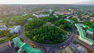 By 1770, Poltava had several brick factories, a regimental doctor, and a pharmacy; that same year the city conducted four fairs.[7] In 1775 it became a city of Novorossiysk Governorate, guarded by the 8th Company of the Dnieper Pike Regiment headquartered in Kobeliaky.[7] In 1775 Poltava's Holy Cross Exaltation Monastery became the seat of bishops of the newly created Eparchy (Diocese) of Slaviansk and Kherson. This large new diocese included the lands of the Novorossiya Governorate and the Azov Governorate north of the Black Sea.[11][12]