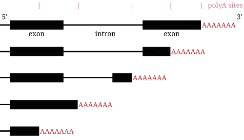 - ^ Tian B, Pan Z, Lee JY (February 2007). "Widespread mRNA polyadenylation events in introns indicate dynamic interplay between polyadenylation and splicing". Genome Research. 17 (2): 156–65. doi:10.1101/gr.5532707. PMC 1781347. PMID 17210931.