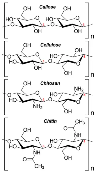 30. ^ Moussian, Bernard (2019). "Chitin: Structure, Chemistry and Biology". Targeting Chitin-containing Organisms. Advances in Experimental Medicine and Biology. Vol. 1142. pp. 5–18. doi:10.1007/978-981-13-7318-3_2. ISBN 978-981-13-7317-6. ISSN 0065-2598. PMID 31102240.
