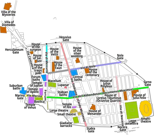 The evolution of Pompeii's private and public buildings is often unclear because of the lack of excavations beneath the levels of 79. It is, however, clear that by the time of the conquest by Sulla in 89 BC, the development of the street layout was largely complete, and most of the insulae were built.[113]