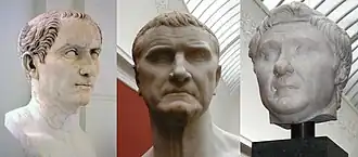 Strabo died in 87 BC during the short-lived civil war known as the Bellum Octavianum, although sources differ on whether he succumbed to disease, or was murdered by his own soldiers.[3] Prior to his death, Strabo was accused of embezzlement; as his legal heir, Pompey was held responsible for the alleged crime and put on trial.[4] He was acquitted, supposedly after agreeing to marry the judge's daughter, Antistia.[5]