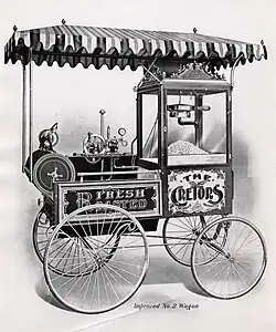 By the turn of the century, Cretors had created and deployed street carts equipped with steam-powered popcorn makers.[31]