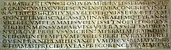 Damasus also did much to encourage the veneration of the Christian martyrs,[39] restoring and creating access to their tombs in the Catacombs of Rome and elsewhere, and setting up tablets with verse inscriptions composed by himself, several of which survive or are recorded in his Epigrammata.[40]