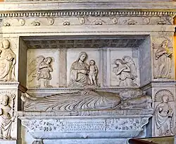 Eugene died in Rome on 23 February 1447,[64] and was buried at Saint Peter's by the tomb of Pope Eugene III. Later his tomb was transferred to San Salvatore in Lauro, a parish church on the other bank of the Tiber River.