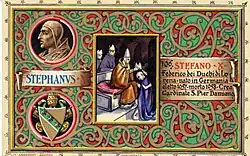 29. ^ He was elected on the Feast of St. Stephen. He explicitly took the name and the number IX. He signed all his official documents Stephanus Nonus Papa (Stephen Ninth Pope), although some lists called him Stephen X from the second half of the 16th century to the first half of 20th.
