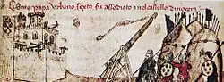 "Pope Urban the sixth was besieged in the castle of Nocera", from Croniche of Giovanni Sercambi