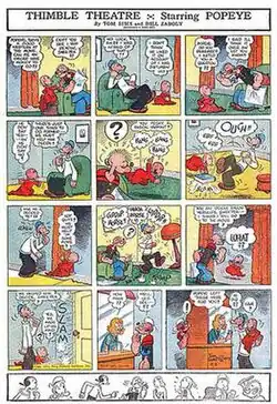 Thimble Theatre was renamed Thimble Theatre Starring Popeye in 1931.[38] It was eventually renamed simply Popeye, the name under which the strip continues to run.