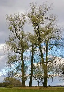 - Populus × canadensis (P. deltoides × P. nigra) – hybrid black poplar