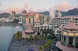 Port Louis was used as a harbour by the Dutch settlers from 1606, when they started to refer to the area as Harbour of Tortoises.[6] In 1736, under French government, it became the administrative centre of Mauritius and a major reprovisioning halt for French ships during their passage between Asia and Europe, around the Cape of Good Hope.[7] The port is named in honour of King Louis XV. During this period of French colonization, Mauritius was known as Ile de France. The French governor at that time, Bertrand-François Mahé de La Bourdonnais, contributed to the development of the city. Since Port Louis was relatively well-protected from strong winds during cyclones by the Moka Mountain Range, Port Louis was selected to house both the main harbor and fort for the island. The value of the port continued during the British occupation of the island during the Napoleonic Wars (1800–15), and helped Britain control the Indian Ocean. However, port calls of ships fell drastically following the opening of the Suez Canal in 1869. Activity in the port increased during the seven-year closure of the Suez Canal (starting in 1967). Modernization of the port in the late 1970s has helped it maintain its role as the central point for all imports and exports from Mauritius. While Port Louis continues to be the business and administrative capital of Mauritius, expansion of the tourism industry in the late 1990s led to considerable development in Port Louis, with many shops, hotels, and restaurants being built in the Caudan Waterfront area.