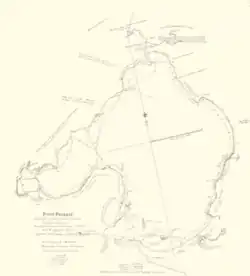 About ten weeks after Murray, Matthew Flinders in HMS Investigator also found and entered the bay,[14] unaware Murray had been there. The official history of Nicholas Baudin's explorations in Le Géographe claimed they too had sighted the entrance at that time (30 March 1802) but this is almost certainly a later embellishment or error, being absent from the ship's logs and Baudin's own accounts.[18] As a result of Murray's and Flinders' reports, King sent Lieutenant Charles Robbins in HMS Cumberland to explore Port Phillip fully. This surveying party, which included Charles Grimes, produced a mostly complete chart of Port Phillip including the mouth of the Yarra River, which they visited on 2 February 1803. Robbins found Aboriginal habitations and groups of Aboriginal people at Tootgarook, Carrum Carrum, on the banks of the Yarra and at Geelong.[19]