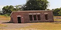 Many of the Dockyard buildings (most of which were of timber construction) were subsequently demolished or destroyed (some in the 1907 Kingston earthquake, others by Hurricane Charlie in 1951).[16] A few remain in place, however, including the Naval Hospital complex, some of the steam engineering buildings and a set of officers' houses.[17] There is also a slipway, completed in 1904, which (with its accompanying sheds) was designed for housing and launching torpedo boats, stationed there for the Yard's protection. In 2014, it was announced that some of the Historic Naval Hospital buildings would be restored to house a museum as part of a broader Port Royal Heritage Tourism Project.[18]