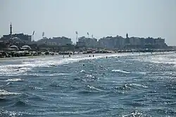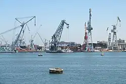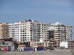 Port Said has been ranked the second among the Egyptian cities according to the Human Development Index in 2009 and 2010;[14] the economic base of the city is fishing and industries, like chemicals, ultra-processed food, and cigarettes. Port Said is also an important harbour for exports of Egyptian products like cotton and rice, and additionally a fueling station for ships that pass through the Suez Canal. It thrives on being a duty-free port, as well as a tourist resort especially during summer.[15] It is home to the Lighthouse of Port Said (the first building in the world built from reinforced concrete).