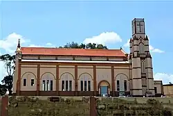 In 2007, as part of the development of tourist attractions in the city, two new monumental buildings related to Voodoo were constructed, financed by the Benin Chamber of Commerce (CCB) and designed by an architectural firm.[28][29] The first of these was a new temple building dedicated to the god Abessan (or Avessan) consisting of a 10-metre-tall tower designed to resemble a termite mound. This design was inspired by the mythical emergence of Abessan from a termite mound.[30][31][32] This modern building is not a reconstruction of an earlier temple but rather a new construction and design inspired by the mythical origin of Abessan.[28] The current structure replaced an earlier temple building which was a small circular hut.[30] The second was a new building for the national headquarters of the Zangbeto, which is designed to resemble a large cone made of raffia and represents the figure of Kpakliyaho (the ancestor of the Zangbeto).[33] The construction of these new monuments was part of the CCB’s plan to make Porto-Novo the "hub of world tourism for the worship of the Vodun religion". These new buildings with their original designs have been strongly criticized by some heritage conservationists.[34]