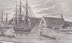In 1767, Andrew Sprowle, a shipbuilder, founded the Gosport Shipyard adjacent to Portsmouth. The Gosport Shipyard at Portsmouth was owned by the Commonwealth of Virginia after the American Revolutionary War and was sold to the new United States federal government. In 1779, Portsmouth was sacked by British forces during the Revolutionary War.[8]