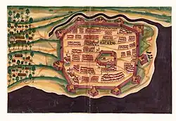 The Ottoman Empire laid the Siege of Diu in 1538, with a strong fleet under the command of the Ottoman governor of Egypt Sulaiman Pasha. The siege lasted for four months, with the aid of a large army provided by the Sultan of Guzerat; after a failed assault on the fortress, and in the face of a huge fleet of Portuguese reinforcements, they were ultimately forced to retreat with considerable losses.[35] The successful defence of Dio by captain António da Silveira against overwhelming odds is one of the most celebrated exploits in Portuguese history.[36] During the siege, the Portuguese captured the Tiro de Diu, a massive Guzerati bombard.[37]