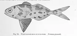 - ^ Jenkins, R. L. (10 February 1983). "Observations on the Commensal Relationship of Nomeus gronovii with Physalia physalis". Copeia. 1983 (1): 250–252. doi:10.2307/1444723. JSTOR 1444723.