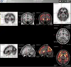 PET may also be used for the diagnosis of hippocampal sclerosis, which causes epilepsy. FDG, and the less common tracers flumazenil and MPPF have been explored for this purpose.[27][28] If the sclerosis is unilateral (right hippocampus or left hippocampus), FDG uptake can be compared with the healthy side. Even if the diagnosis is difficult with MRI, it may be diagnosed with PET.[29][30]
