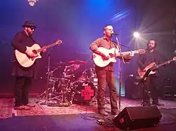 The 1997 breakup of Soundgarden was seen by some as the end of the original grunge movement.[52] Post-grunge then morphed in the late 1990s and 2000s, gaining further popularity with newer acts such as Creed, Matchbox Twenty,[1] Days of the New,[53] Fuel, Oleander,[54] Godsmack,[55] 3 Doors Down, Puddle of Mudd, Staind,[56] Nickelback, Seether,[3] Three Days Grace, Switchfoot,[57] 12 Stones,[58] Breaking Benjamin, Shinedown, Stone Sour,[59] Hinder, Daughtry,[60] and Skillet.[61] This wave retained some of the angst and anger of the earlier artists[19] but also had more conventional anthems, narratives, and romantic songs.[3] Creed's albums My Own Prison (1997) and Weathered (2001) were both certified 6× platinum by the RIAA.[62][63] Weathered sold at least 6,400,000 copies in the United States.[64] Creed's album Human Clay, released in 1999, was certified diamond by the RIAA[65] and sold at least 11,690,000 copies in the United States.[66] Human Clay's song "With Arms Wide Open" peaked at number 1 on the Billboard Hot 100.[67] Matchbox Twenty's 1996 debut album, Yourself or Someone Like You, was a success in 1997 and 1998 on the strength of radio singles "Push"[68] and "3AM";[69] it was certified 12× platinum by the RIAA.[70] The Foo Fighters' second album The Colour and the Shape, which is considered a post-grunge album,[71] became a hit and was certified Platinum by the RIAA[72] having sold at least two million copies in the United States.[73]