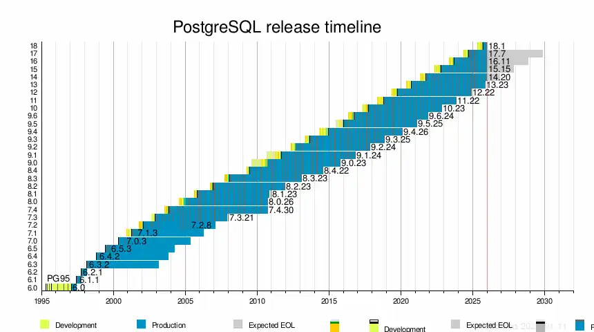 - ^ "PostgreSQL 18 Released!". September 25, 2025.