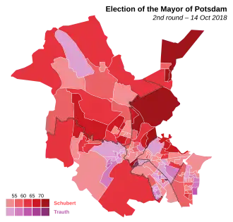 The city of Potsdam is divided into 32 Stadtteile (boroughs, both quarters and suburbs/wards together),[4] which are divided further into 84 statistical Bezirke (districts).