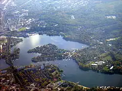 The area was formed from a series of large moraines left after the last glacial period. Today, only one quarter of the city is built up, the rest remaining as green space.