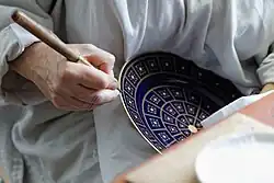 Pottery is the process and the products of forming vessels and other objects with clay and other raw materials, which are fired at high temperatures to give them a hard and durable form. The place where such wares are made by a potter is also called a pottery (plural potteries). The definition of pottery, used by the ASTM International, is "all fired ceramic wares that contain clay when formed, except technical, structural, and refractory products".[1] End applications include tableware, decorative ware, sanitary ware, and in technology and industry such as electrical insulators and laboratory ware. In art history and archaeology, especially of ancient and prehistoric periods, pottery often means only vessels, and sculpted figurines of the same material are called terracottas.[2]