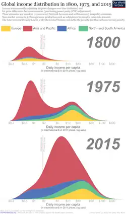 Global income distribution over time. The chart shows a significant shift of incomes toward higher levels.