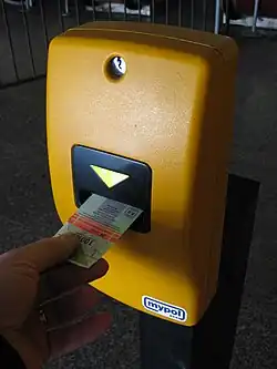 The Prague Metro operates on a proof-of-payment system, as does the rest of the PID network. Passengers must buy and validate a ticket before entering a station's paid area. There are uniformed and plainclothes fare inspectors who randomly check passengers' tickets within the paid area.