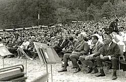 The press, the radio, and the television also contributed to these discussions by hosting meetings where students and young workers could ask questions of writers such as Goldstücker, Pavel Kohout, and Jan Procházka and political victims such as Josef Smrkovský, Zdeněk Hejzlar, and Gustáv Husák.[18] Television also broadcast meetings between former political prisoners and the communist leaders from the secret police or prisons where they were held.[17] Most importantly, this new self-called freedom and the introduction of television into the lives of everyday Czechoslovak citizens moved the political dialogue from the intellectual to the popular sphere.