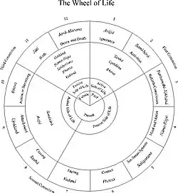 Understanding the relationships between these phenomena is said to lead to nibbana, complete freedom from the cyclical rebirth cycles of samsara.[75][4][7] Traditionally, the reversal of the causal chain is explained as leading to the cessation of mental formations and rebirth.[4][7] Alex Wayman notes that "according to Buddhist tradition, Gautama discovered this formula during the night of Enlightenment and by working backward from "old age and death" in the reverse of the arising order."[76] Wayman also writes that "in time, the twelve members were depicted on the rim of a wheel representing samsara."[76]
