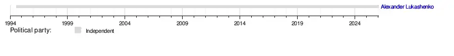 In the first set of elections for the office of president, the prime minister of Belarus, Vyacheslav Kebich, was defeated in a runoff vote by Alexander Lukashenko, resulting in Lukashenko becoming the first president.[8] In elections of 2001 and 2006, which were contested by international observers, Western powers and internal opposition parties due for failing to meet democratic and fair standards,[10] the incumbent Lukashenko defeated the other candidates within the first ballot. As of 24 September 2025, he is the only person to have served as President of Belarus.[11]