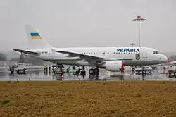 For their services to the state, the president is allotted a yearly gross salary of 28,000/mo or 336,000/yr ($13,500/yr, 2016).[55][56][57] All official and state visits made by the president are operated by the Ukraine Air Enterprise presidential airplanes.[58] All required aviation transportation is provided by the State Aviation Company "Ukraina" (Ukraine Air Enterprise), the headquarters of which is located in Boryspil.[59][60]