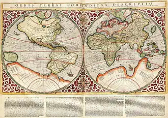 In 1541, Mercator produced his 41 cm terrestrial globe and drew his prime meridian precisely through Fuerteventura (14°1′W) in the Canaries. His later maps used the Azores, following the magnetic hypothesis, but by the time that Ortelius produced the first modern atlas in 1570, other islands such as Cape Verde were coming into use. In his atlas longitudes were counted from 0° to 360°, not 180°W to 180°E as is usual today. This practice was followed by navigators well into the 18th century.[9] In 1634, Cardinal Richelieu used the westernmost island of the Canaries, El Hierro, 19°55′ west of Paris, as the choice of meridian. The geographer Delisle decided to round this off to 20°, so that it simply became the meridian of Paris disguised.[10]