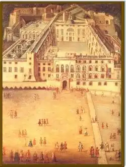A prince noted for the permissiveness of his private life, Louis I's prodigality was notorious. While visiting England in 1677 he incurred the ire of King Charles II by showering expensive gifts on Hortense Mancini, the king's mistress.[11] The English and Prince Louis later became political enemies when Louis took part in the Anglo-Dutch Wars against England, leading his own Monaco Cavalry into battles in Flanders and Franche-Comté. These acts earned Louis the gratitude of Louis XIV who made him ambassador to the Holy See, charged with securing the Spanish Succession. However, the cost of upholding his position at the papal court caused him to sell most of his grandfather Honoré II's art collection, denuding the palace he had earlier so spectacularly enhanced.[12] Louis died before securing the Spanish throne for France, an act which would have earned the Grimaldi huge rewards. Instead Europe was immediately plunged into turmoil as the War of the Spanish Succession began.