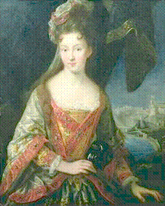Illustration 11: Princess Louise-Hippolyte of Monaco. The palace she barely knew is clearly visible in the background of this painting dated 1712.