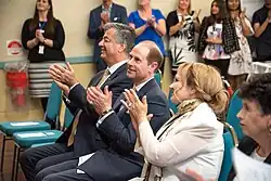 In 2013, the couple visited South Africa.[80] The Queen appointed the Earl of Wessex as Lord High Commissioner to the General Assembly of the Church of Scotland for 2014.[81][82] In 2015, in recognition of his contributions to projects associated with badminton, Edward received the President's Medal from the Badminton World Federation President Poul-Erik Høyer.[83]