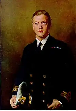 George received his early education from a tutor and then followed his elder brother, Henry, to St Peter's Court, a preparatory school at Broadstairs, Kent. At the age of 13, like his brothers, the Prince of Wales, later King Edward VIII and Albert, later King George VI, before him, he went to naval college, first at Osborne and later, at Dartmouth.[3] He was promoted to sub-lieutenant on 15 February 1924,[4] and was promoted to lieutenant on 15 February 1926.[5] He remained on active service in the Royal Navy until March 1929, serving on HMS Iron Duke and later on the flagship of the Atlantic Fleet (renamed the Home Fleet in 1932), HMS Nelson.[3] He served on the latter as a lieutenant on the admiral's staff before transferring in 1928 to HMS Durban on the America and West Indies Station, based at the Royal Naval Dockyard at Bermuda. His father had previously served at Bermuda on HMS Canada and HMS Thrush, as a watch-keeping lieutenant.[6]