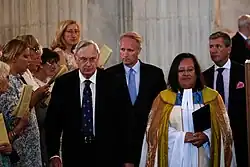 On 14 September 2022, after the death of Queen Elizabeth II on 8 September, the Duke joined her children, grandsons, nephew, and son-in-law, in walking in the state cortege from Buckingham Palace to Westminster Hall, for her lying in state.[44]