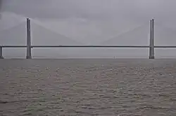 The Severn Estuary presented a barrier between the Bristol area and South Wales. The estuary has a maximum tidal range of 14.5 metres (48 ft), amongst the highest in the world,[4] and during a rising or falling tide there are strong currents of up to 8 knots (4.1 m/s). Much of the estuary is mud flats that are exposed at low tide; these have been designated a Special Protection Area. The central part of the estuary is a navigable channel which, at the site of the bridge, is known as "The Shoots". The bridge is upstream from Avonmouth and the Port of Bristol, but downstream from the Port of Sharpness. The Gloucester Harbour Trustees have responsibility for controlling navigation in the estuary's tidal waters upstream from the bridge.[5]
