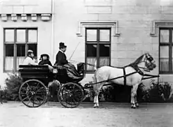 Louise, Lorne, and two attendants, were hurt in a sleigh accident on 14 February 1880.[46] The winter was particularly severe, and the carriage in which they were traveling overturned, throwing the coachman and footman from the sleigh. The horses then panicked, and dragged the overturned carriage over more than 400 yards (370 m) of ground. Louise was knocked unconscious when she hit her head on the iron bar supporting the roof, and Lorne was trapped underneath her, expecting "the sides of the carriage to give way at any moment".[47][48] Eventually, as they overtook the sleigh ahead, the horses calmed, and the occupant of that sleigh, Princess Louise's aide-de-camp, ordered an empty carriage to convey the injured party back to Rideau Hall.[49]