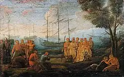 In 1640, don Melchor de Aguilera, Governor and Captain-General of Cartagena, resolved to remove the intolerable infestation of pirates on the island. Taking advantage of having infantry from Castile and Portugal wintering in his port, he dispatched six hundred armed Spaniards from the fleet and the presidio, and two hundred black and mulatto militiamen under the leadership of don Antonio Maldonado y Tejada, his Sergeant Major, in six small frigates and a galleon.[49] The troops were landed on the island, and a fierce fight ensued. The Spanish were forced to withdraw when a gale blew up and threatened their ships. Carter had the Spanish prisoners executed. When the Puritan leaders protested against this brutality, Carter sent four of them home in chains.[50]